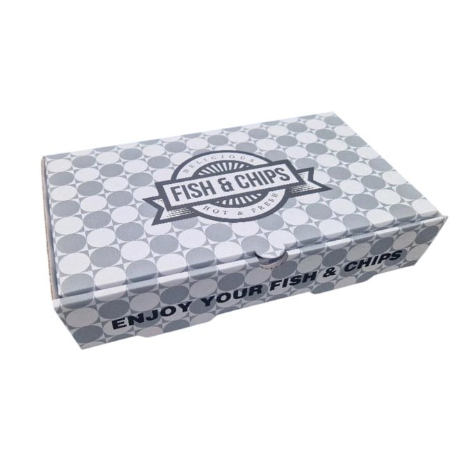 E-Flute boxes. Takes less storage space whilst providing optimal strength to carry food, Perfect for serving Fish and Chip meals.