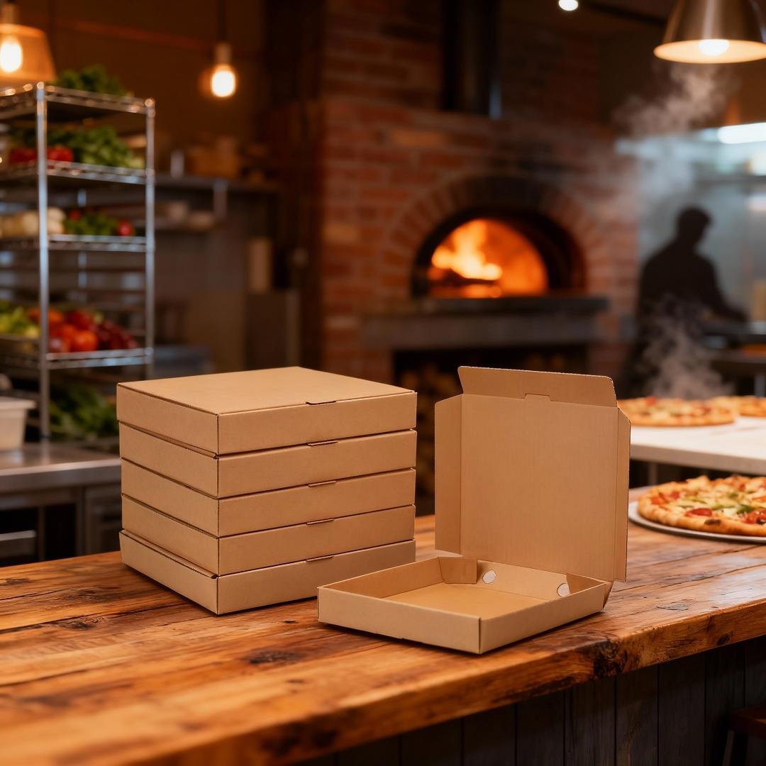 E-Flute boxes. Takes less storage space whilst providing the optimal strength to carry food. Perfect for serving takeaway Pizza.